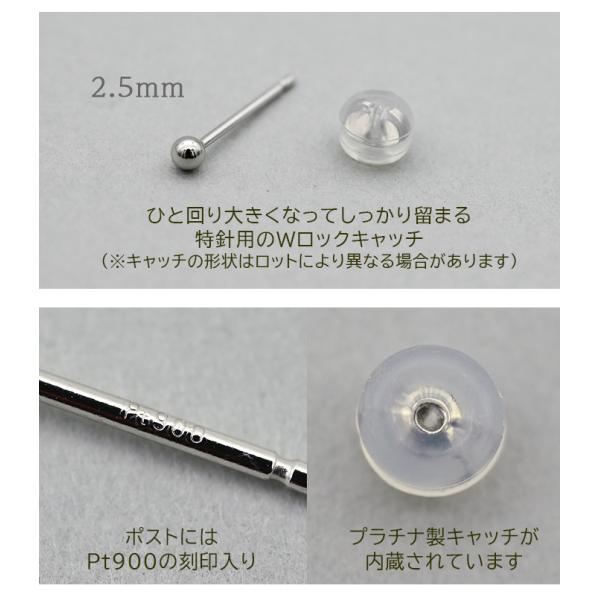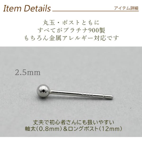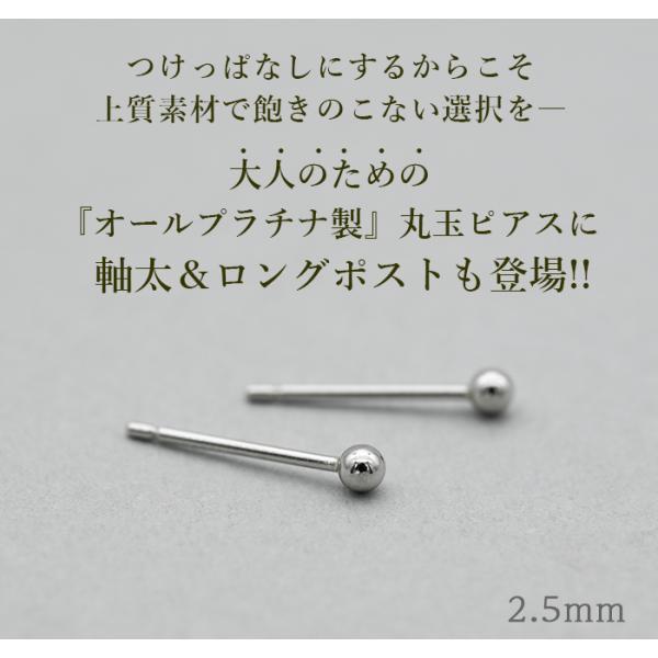 セカンドピアス プラチナ ピアス つけっぱなし 丸玉 2.5mm 軸太0.8 ロングポスト12mm 特針 片耳 1個 小さめ 大人 シンプル かわいい 一生もの メンズ レディース