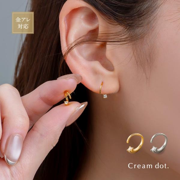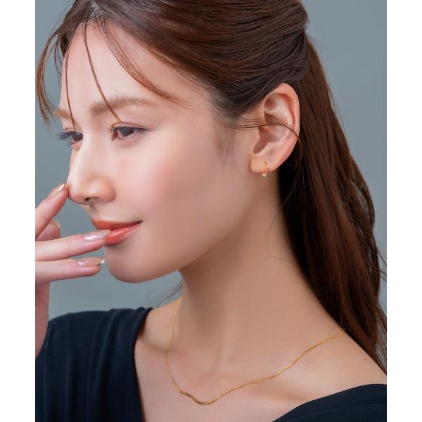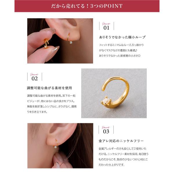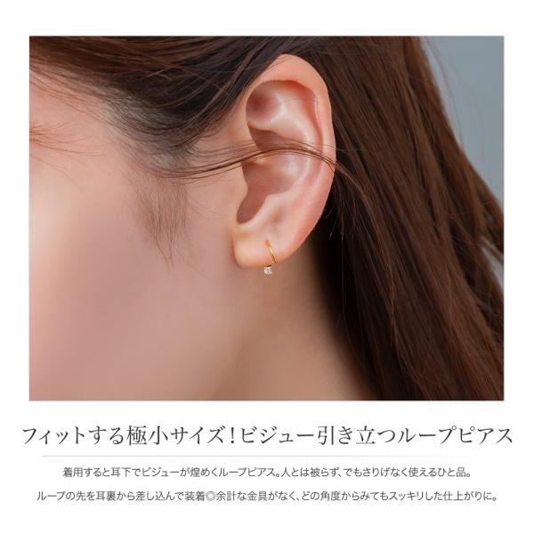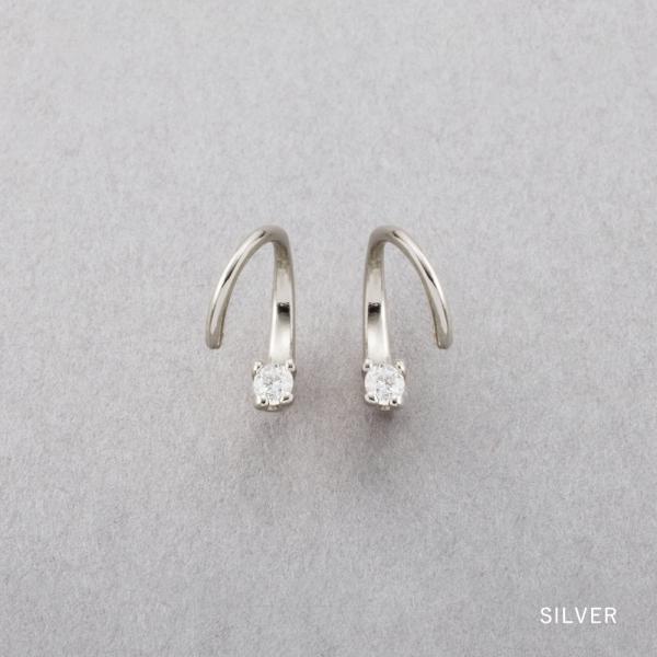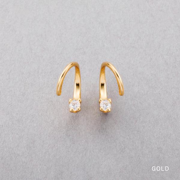 金属アレルギー対応 ピアス ニッケルフリー スパイラル スクリュー ループ レイヤード風 一粒ビジュー 極小 ミニ 微調整可能