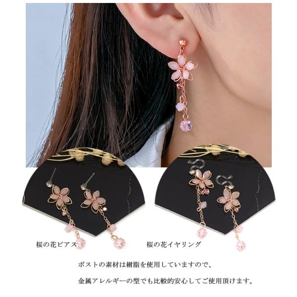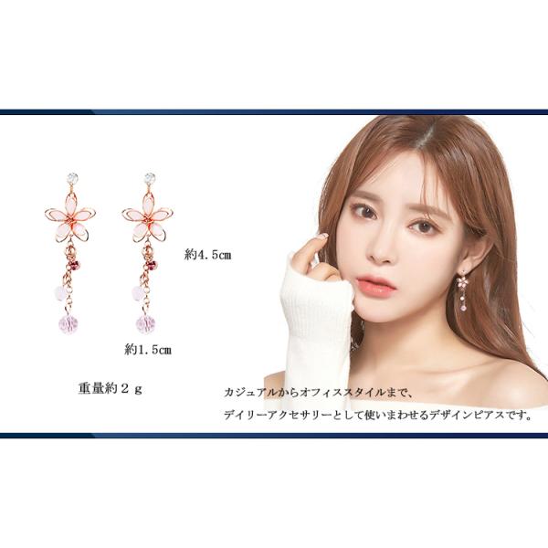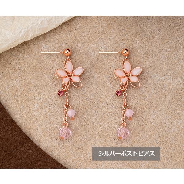 ピアス レディース アレルギー対応 揺れる 桜の花 14Kメッキ ワイヤフラワー ロングピアス 大人 可愛い 爆買