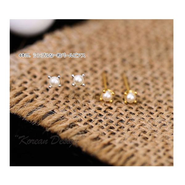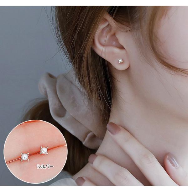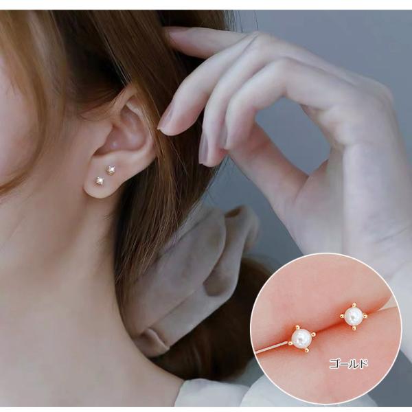 ピアス レディース パール 一粒 3mm 極小 小さめ スタッドピアス 4本爪 18kコーティング ゴールド シルバー 金属アレルギー対応 セカンドピアス つけっぱなし