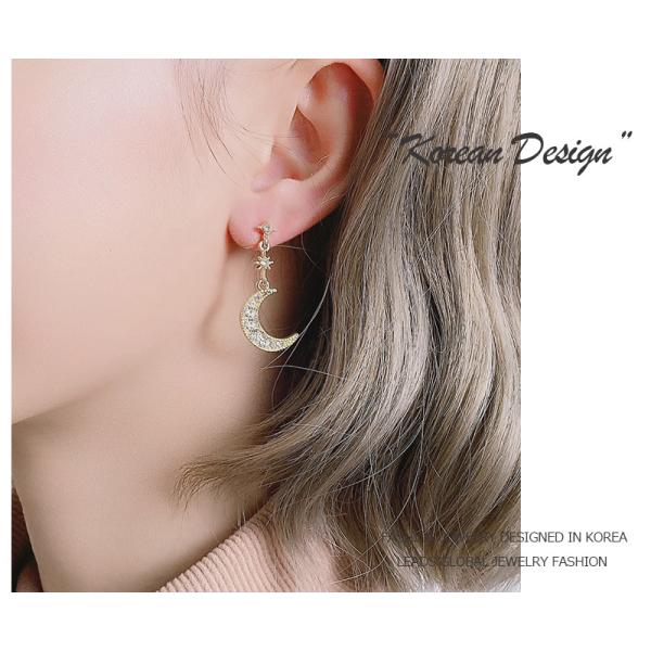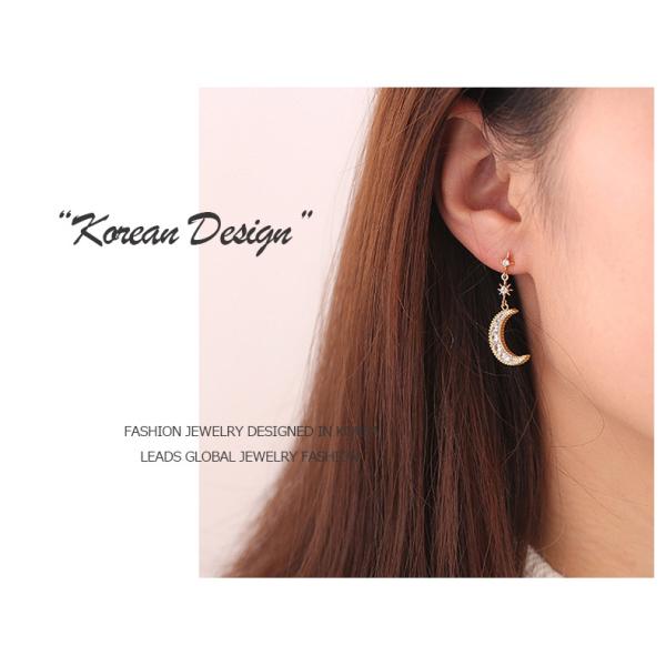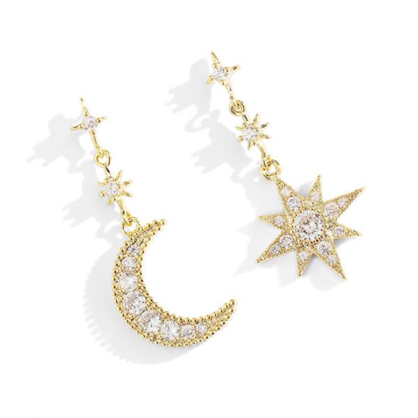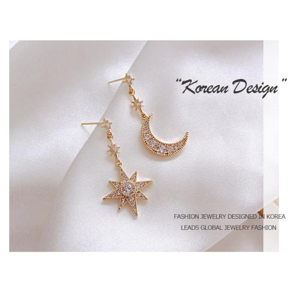 ピアス 18金 仕上げ CZダイヤ 星月 モチーフ レディース 揺れる アレルギー対応 ポイント消化 アシンメトリー 誕生日 母 プレゼント 爆買