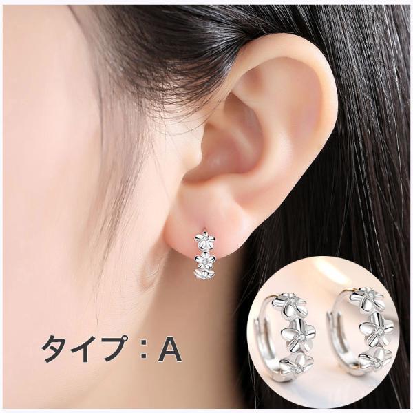 ピアス レディース フープピアス 4タイプ アレルギー対応 CZダイヤ お花 シンプル 誕生日 母 プレゼント ポイント消化 爆買