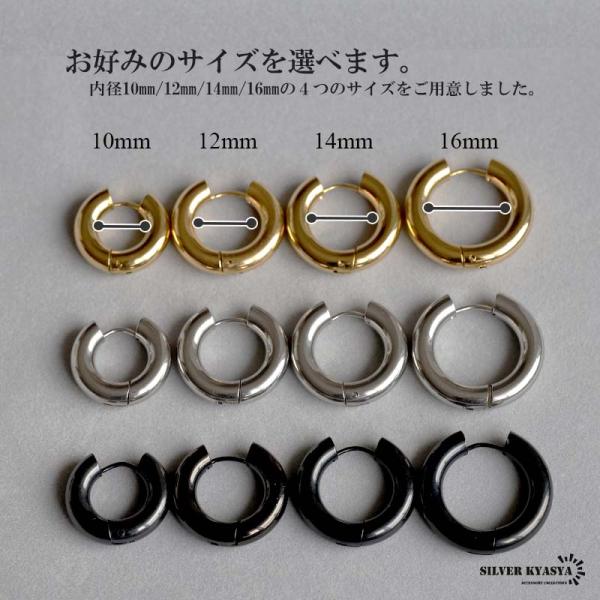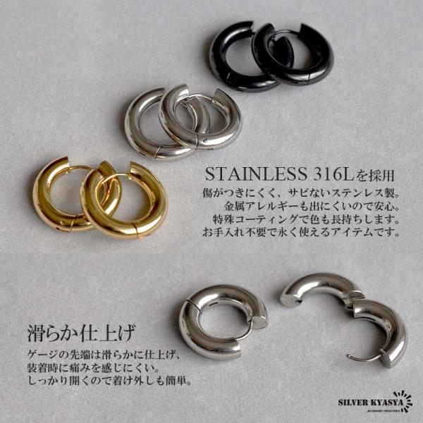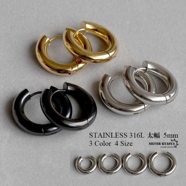 太め フープピアス 2点 5mm シルバー ゴールド ブラック 金 銀 黒 リングピアス ステンレス 両耳用 レディース メンズ 爆買