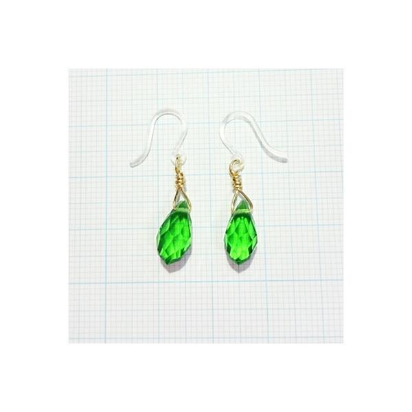 しずくピアスNo.3(ガラスビーズ・グリーン)