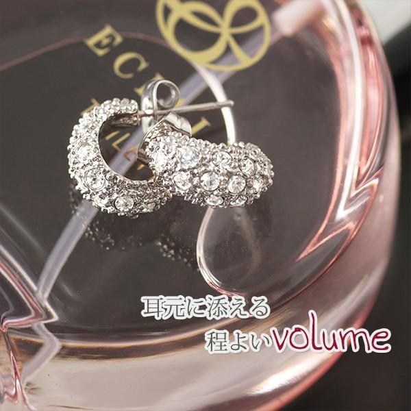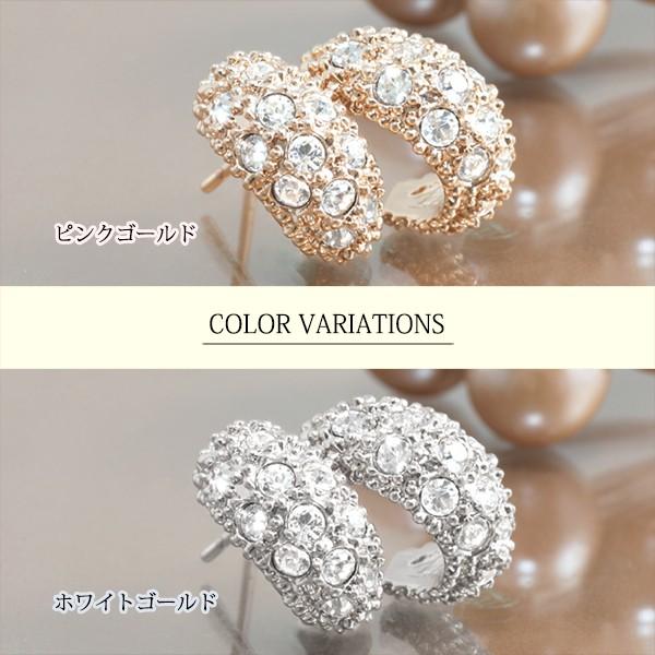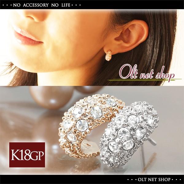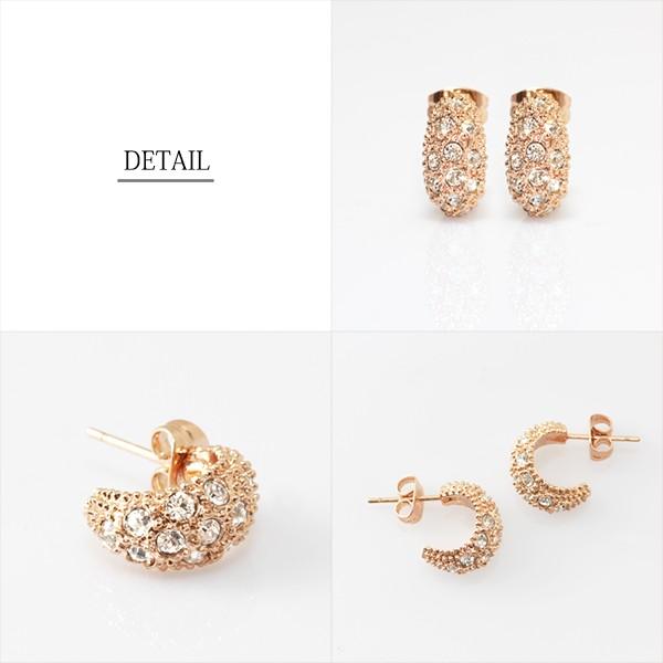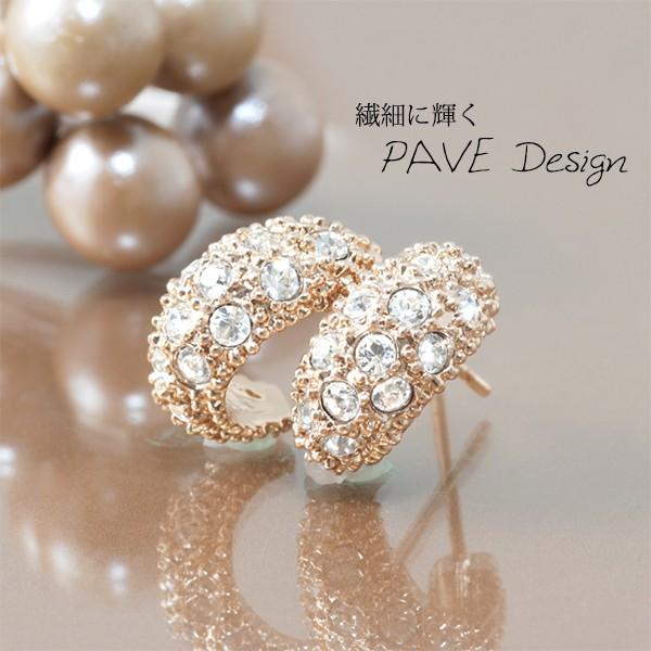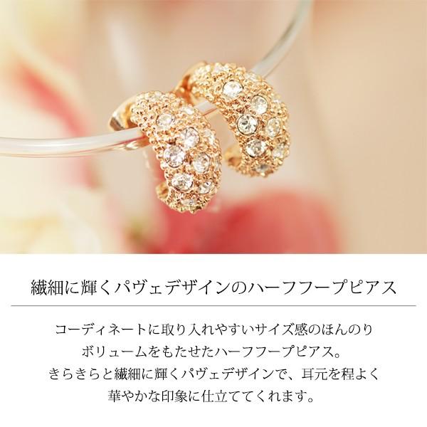 ピアス レディース ハーフ フープ 月形丸甲 パヴェ czダイヤ 18金 18kコーティング ピンクゴールド シルバー K18GP