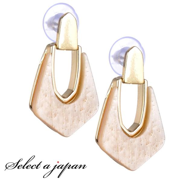 ピアス レディース 大理石風 五角形 ゴールド ベージュ ジュエリー アクセサリー シンプル カジュアル 大人 ワンポイント 女性用