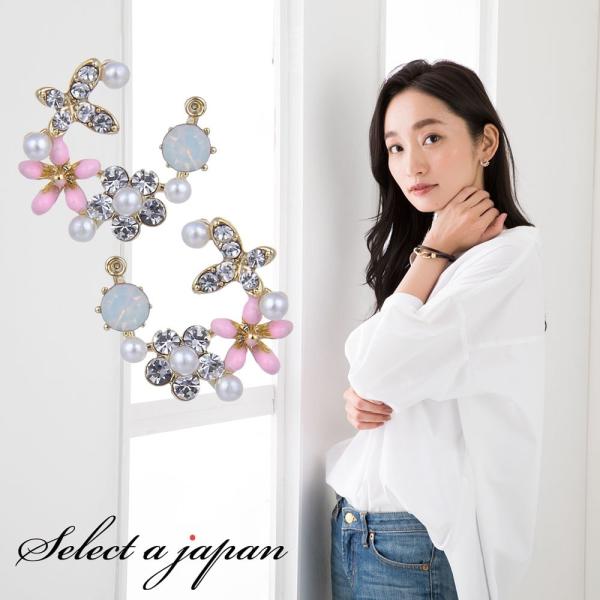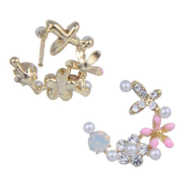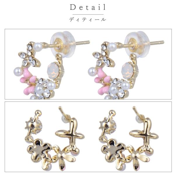 ピアス レディース ハーフサークル 小花 ジュエリー アクセサリー シンプル カジュアル 大人 ワンポイント 女性用