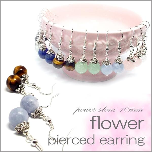 天然石 パワーストーン ピアス flower フラワー ピアス 大玉10mm ラピスラズリ