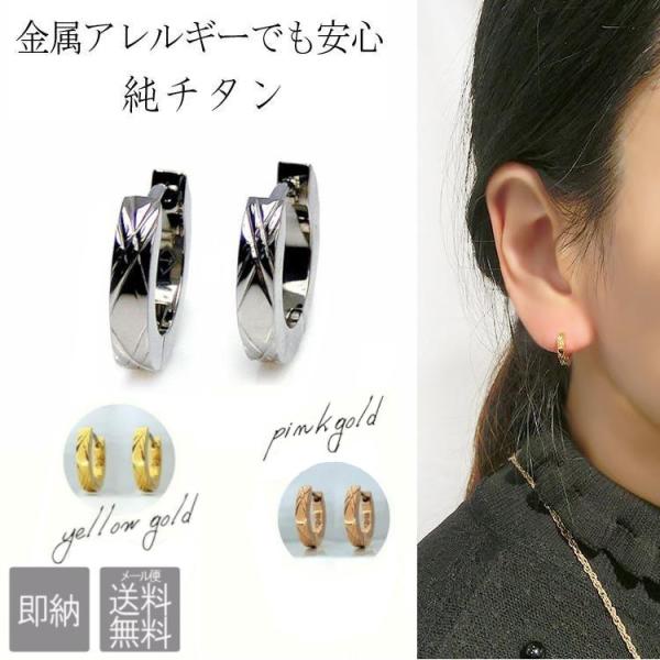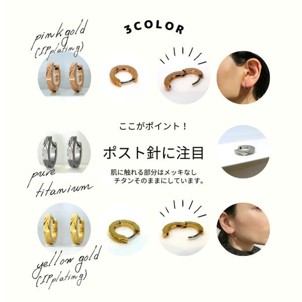 ピアス 金属アレルギー フープ つけっぱなし ダイヤカット チタン 純チタン メンズ 格子柄 ピンクゴールド色 ゴールド色 シルバー色