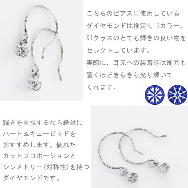 ダイヤモンド ピアス 一粒 プラチナ ハート&キューピッドダイヤモンド鑑別カード付き レディース 0.1カラット ダイヤピアス フックタイプ