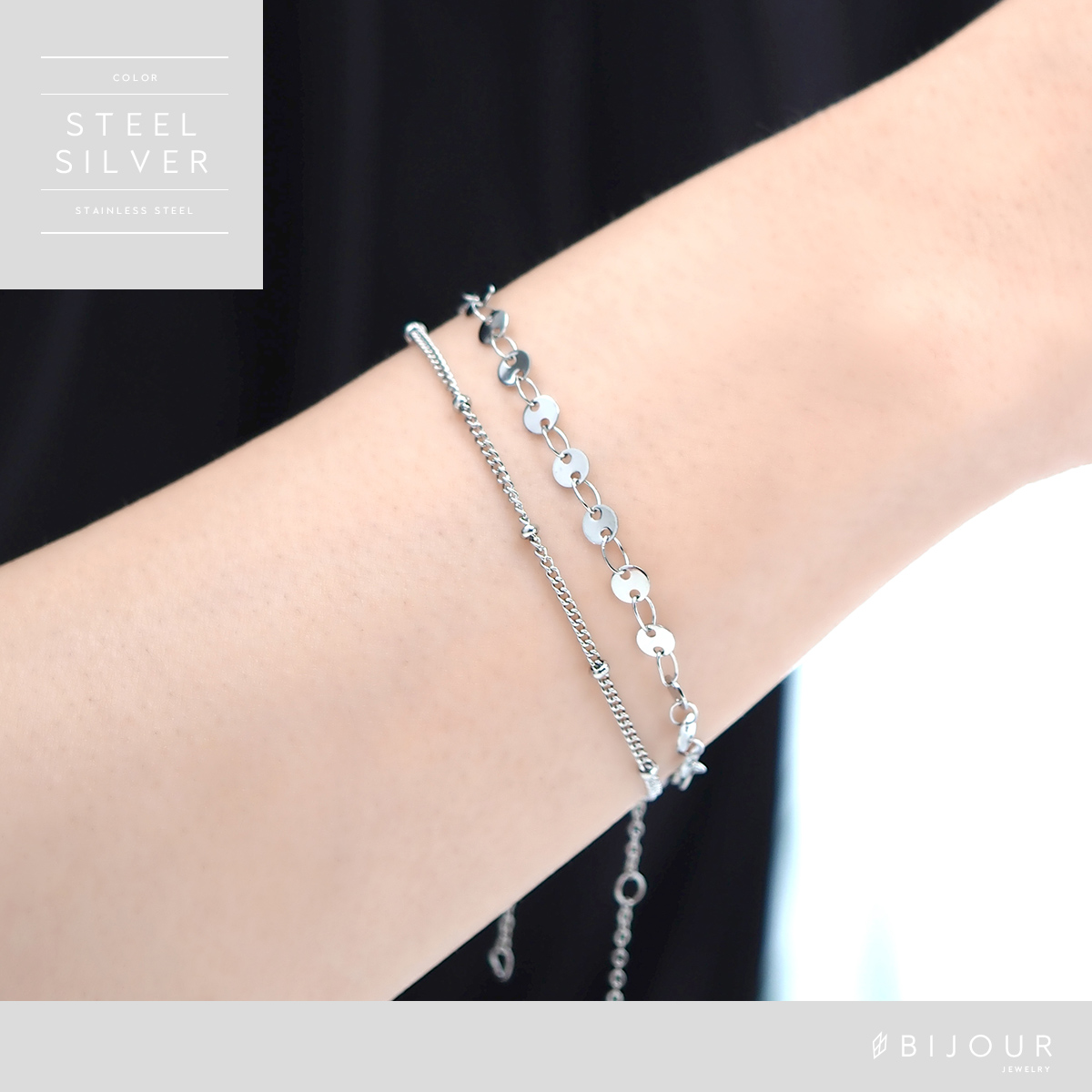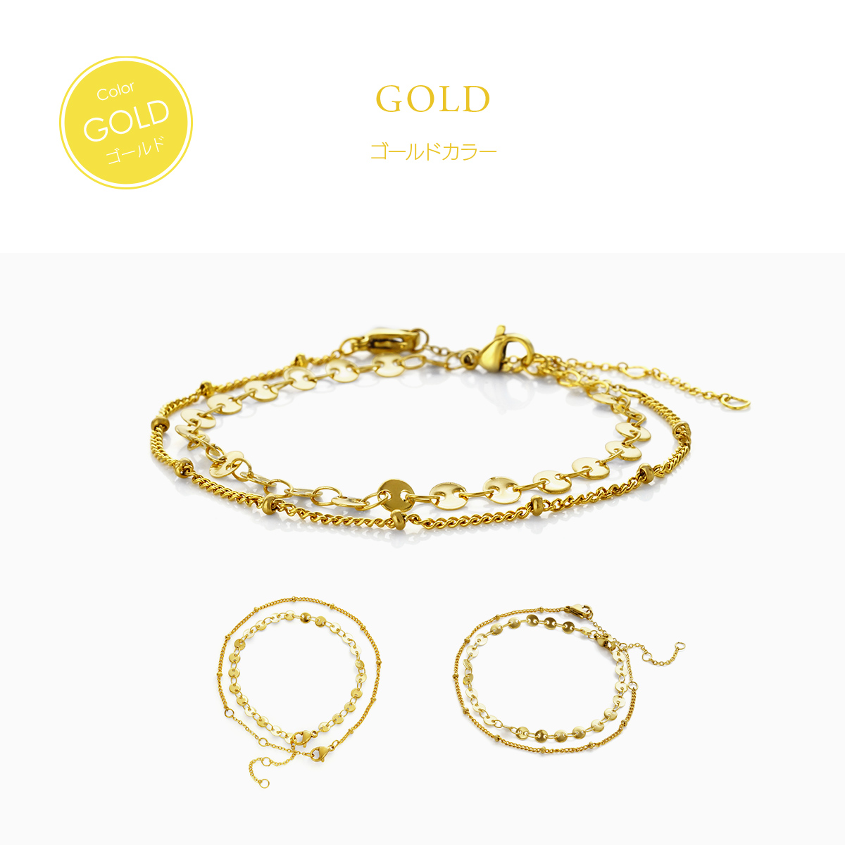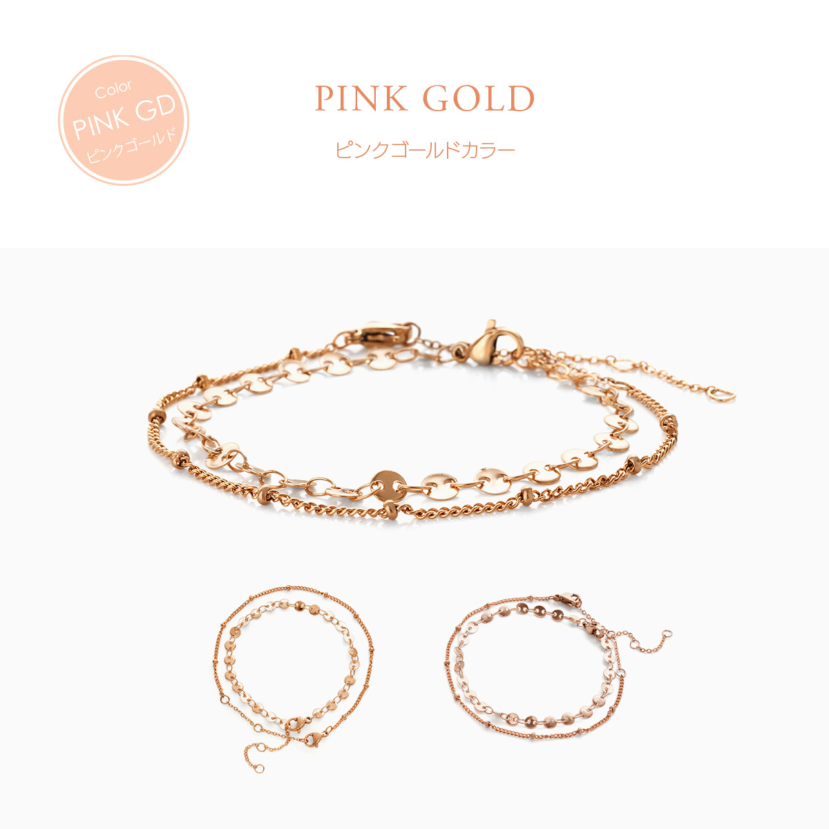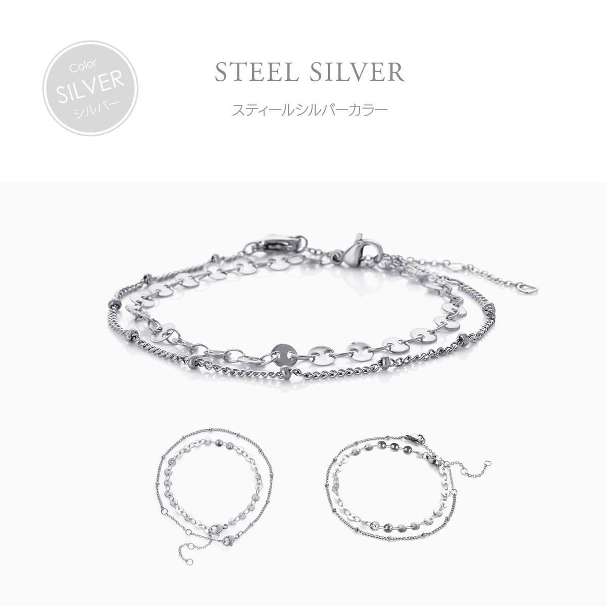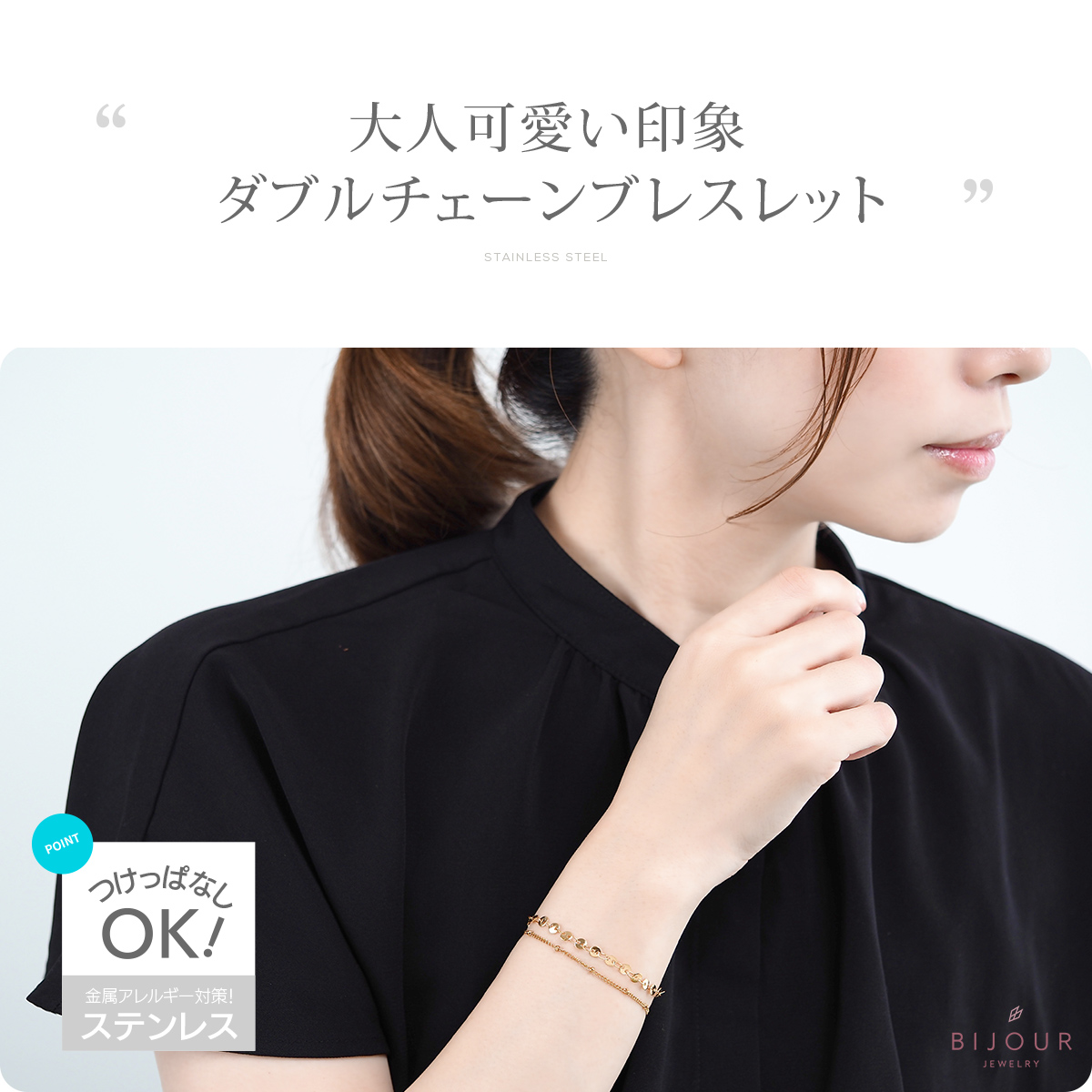 金属アレルギー対応 つけっぱなしOK ブレスレット ステンレス チェーン Bijour ビジュール bib0102 3WAY