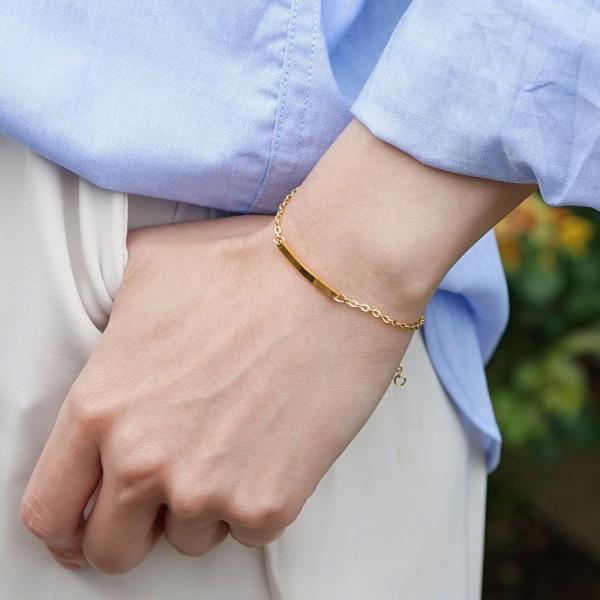 チェーン ブレスレット つけっぱなしok シンプル プレート カップル ペア 記念日 名入れ 刻印 メンズ レディース アレルギーフリー 単品販売 MS AP1003 Alavel