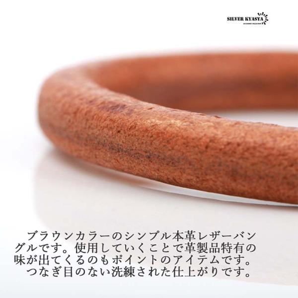 縫い目なし 本革 バングル 腕輪 レザーブレスレット 牛革 シンプル ブラウン プレーンバングル 3サイズ 太め 6mm 爆買