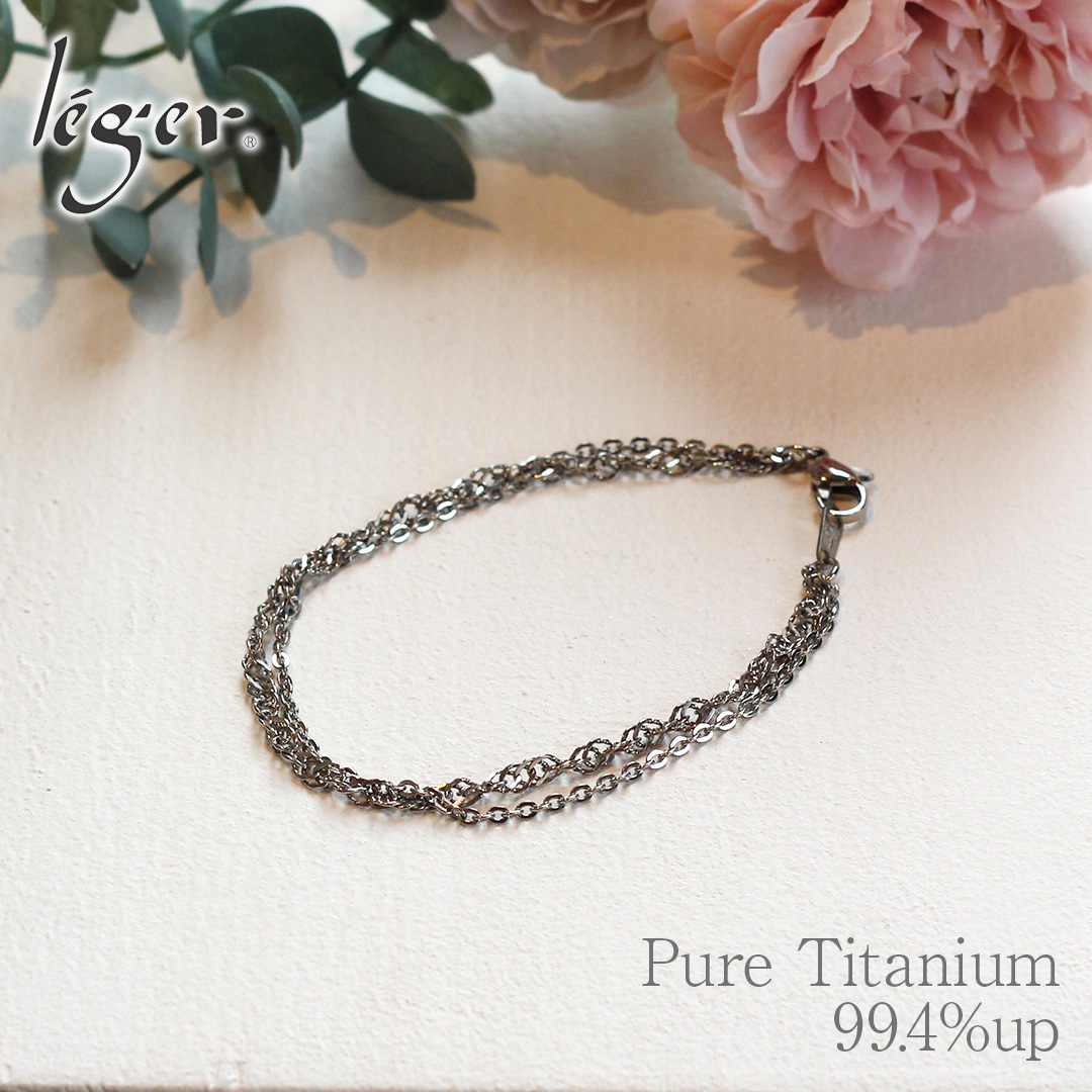 ブレスレット チタン 2連 17cm ブレス 腕輪 小豆 スクリュー フック メンズ レディース シンプル 日本製 金属アレルギー対応 ABV17F レジエ レジェ leger