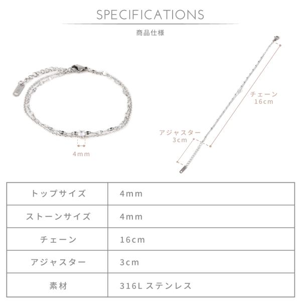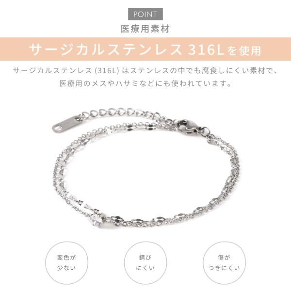金属アレルギー対応 サージカルステンレス ブレスレット レディース 医療用 ステンレス 316L ニッケルフリー 安心 一粒 キュービックジルコニア