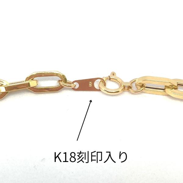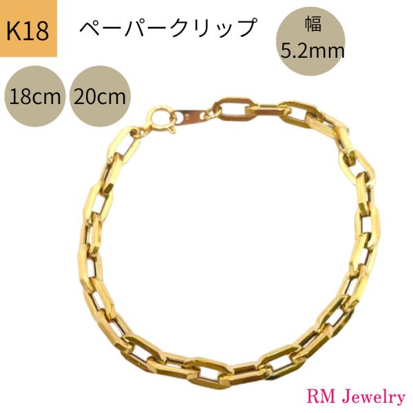 18金 ペーパークリップ チェーン ブレスレット 幅5.2mm 18cm 20cm 18cm+2cmアジャスター K18 YG 角アズキ 中空 RMジュエリー