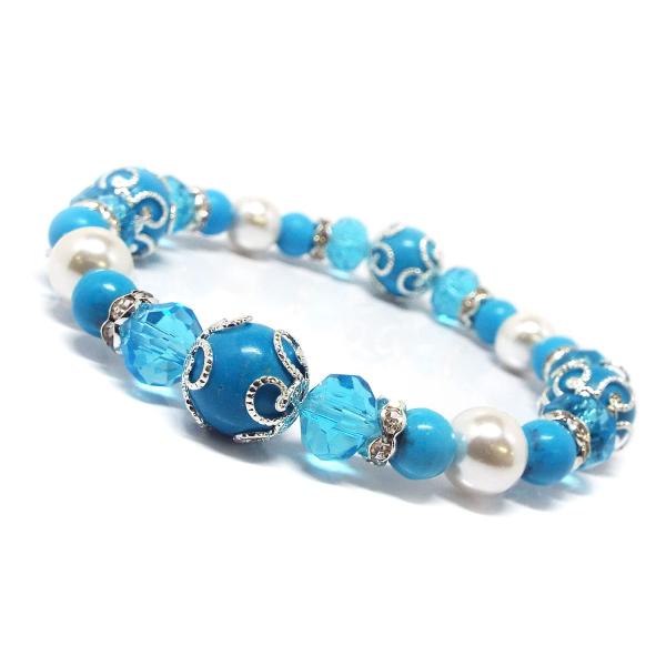 天然石 パワーストーン ブレスレット ターコイズブルー 女子力UP きらきら Lovers'ブレス レディース アクセサリー