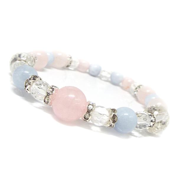 天然石 パワーストーン ブレスレット ローズクォーツ アクアマリン クリスタル 水晶 レディース アクセサリー