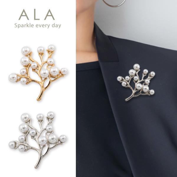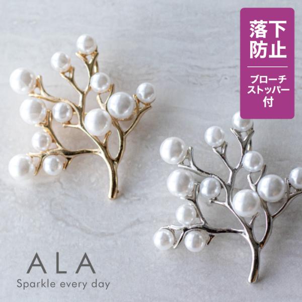 ブローチ パール 落下防止ブローチストッパー付き ALA パールの小枝 卒園式 卒業式 入学式 入園式 結婚式 七五三 おしゃれ フォーマル スカーフ留め 女性