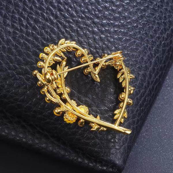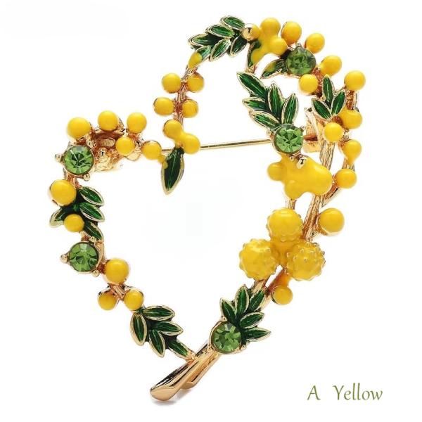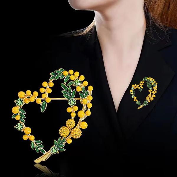 ブローチ ミモザのハート型ブローチ 赤 レッド 黄色 イエロー ゴールド 母の日 敬老の日 プレゼント 入学式 卒業式 送料無料