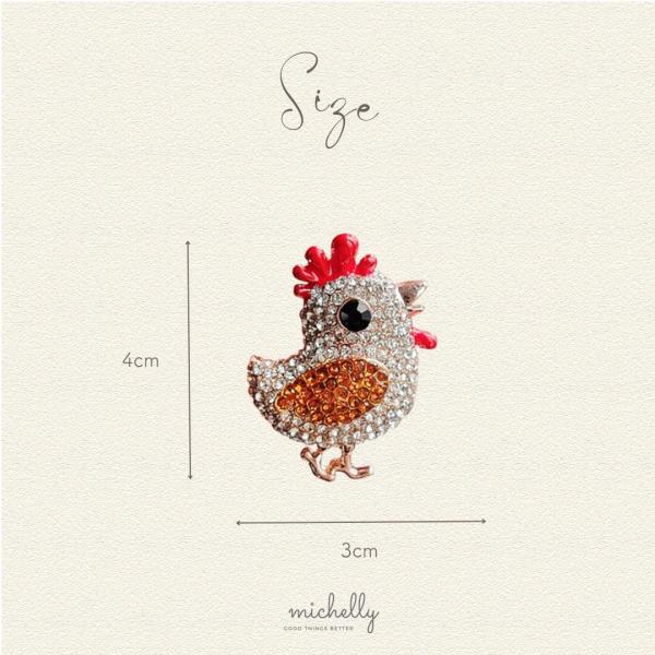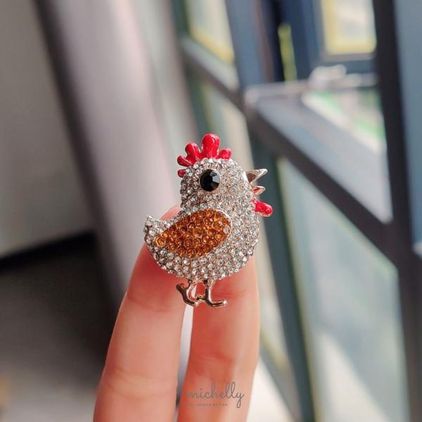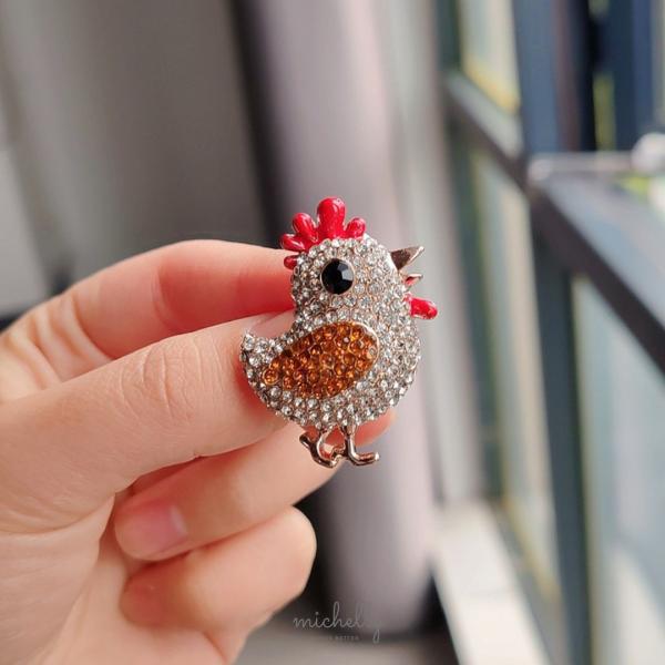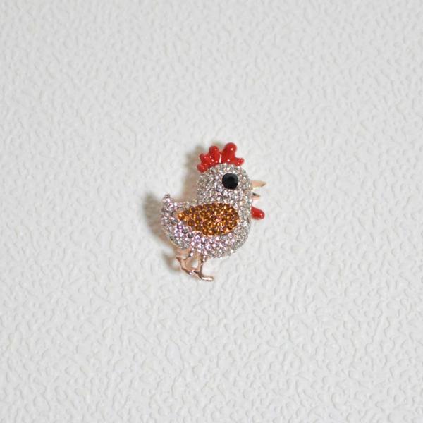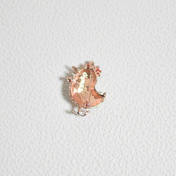 ブローチ にわとりキラキラ ラインストーン アニマル 鶏 鳥 アクセサリー レディース ゴールド 赤 オレンジ