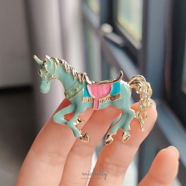 ブローチ ユニコーン ミント オレンジ ネイビー ゴールド 馬 モチーフ アクセサリー おしゃれ かわいい 大人