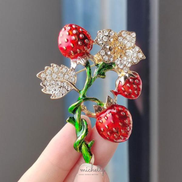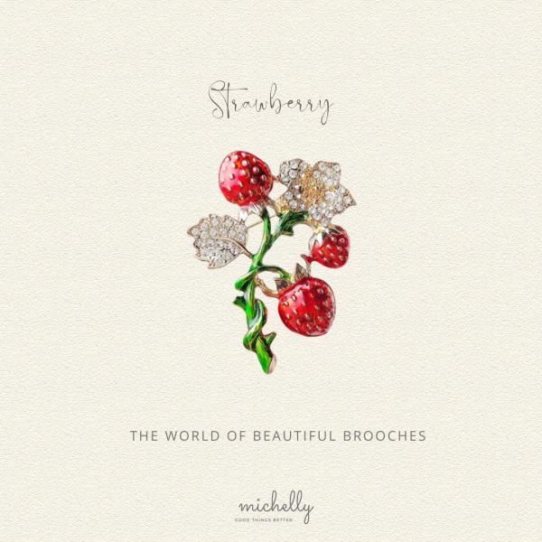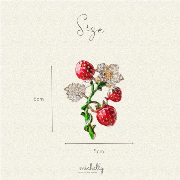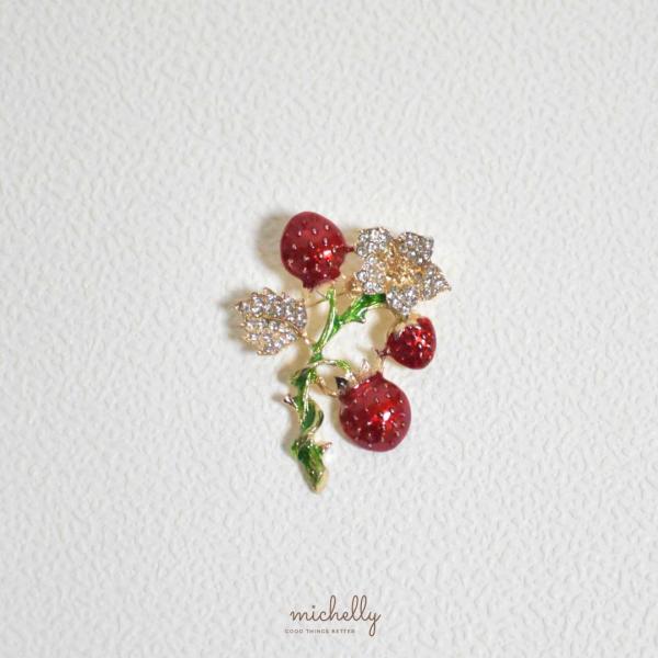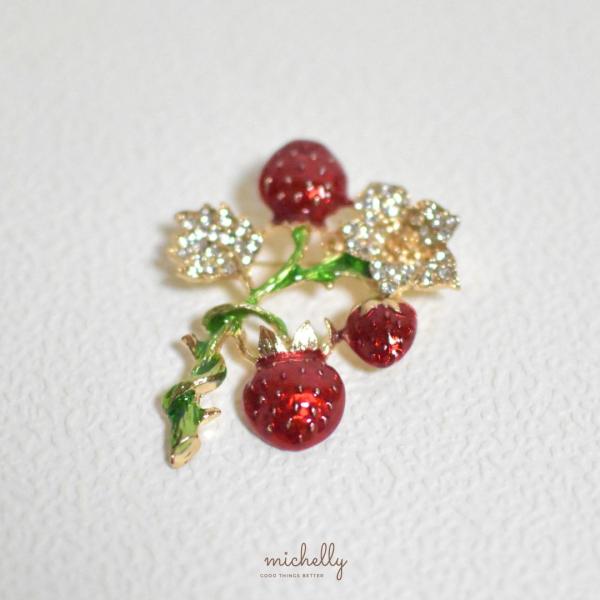 ブローチ いちご ストロベリー 赤 フルーツ 果物 花 キラキラ ラインストーン おしゃれ 上品 かわいい