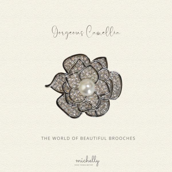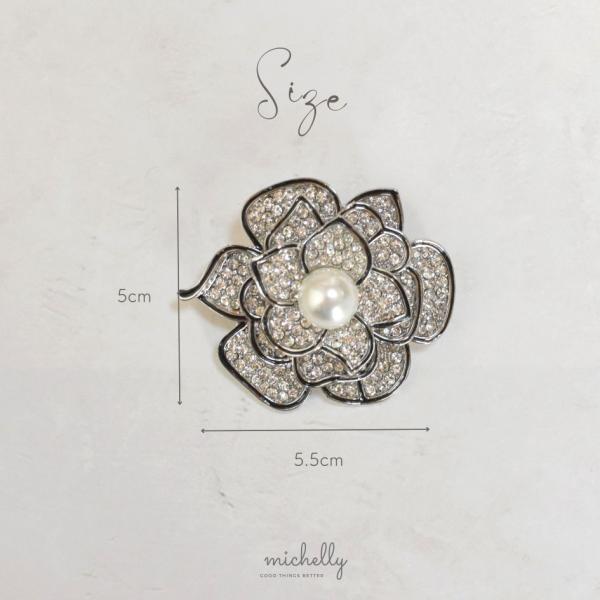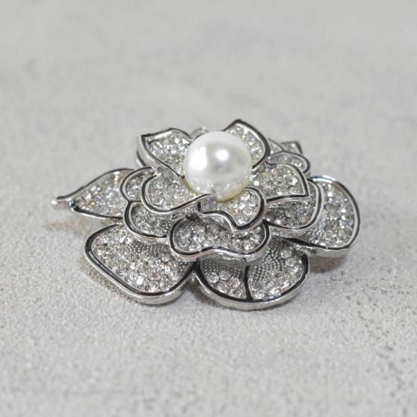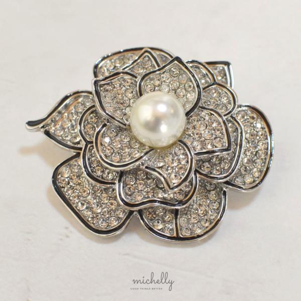 ブローチ カメリア パール ストーン シルバー 入学式 卒業式 大きめ おしゃれ きれいめ フォーマル 華やか