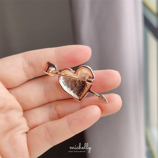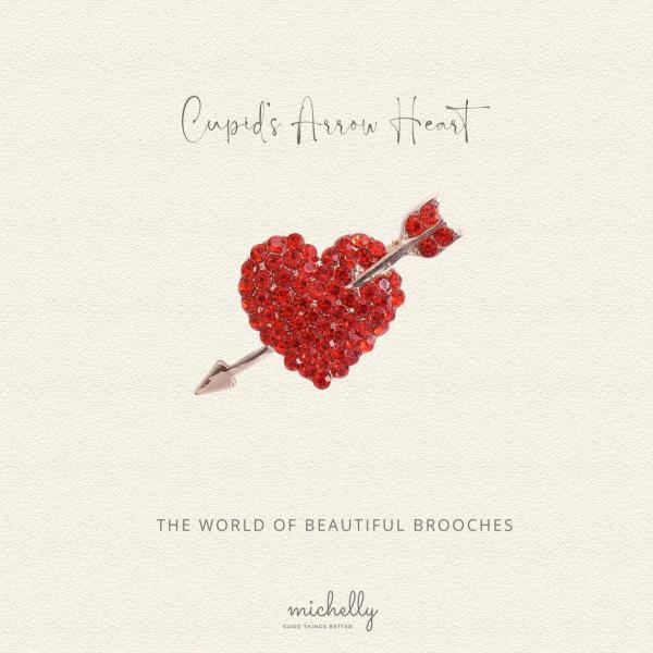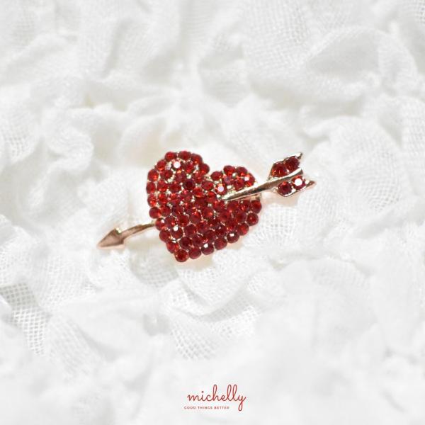 ハート ブローチ 赤 ラインストーン キューピット 矢 大人 可愛い アクセサリー プレゼント バレンタイン