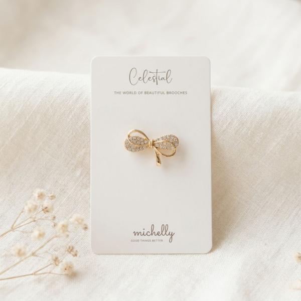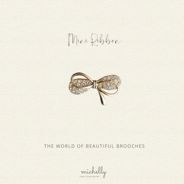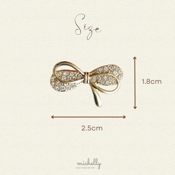 リボン ブローチ 小ぶり ゴールド ビジュー 2.5cm ミニサイズ 卒業式 入学式 卒園式 結婚式 フォーマル 襟元 付け襟 アクセサリー