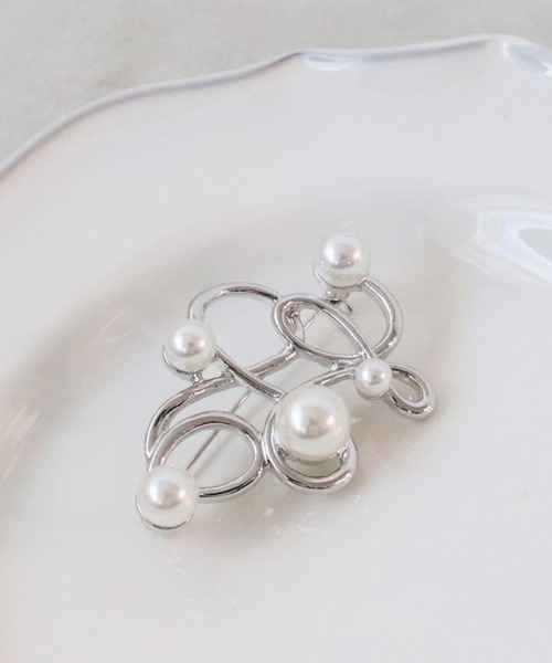 ブローチ モノグラムパールブローチ「フォーマル/入卒/パーティ/セレモニー」 レディース