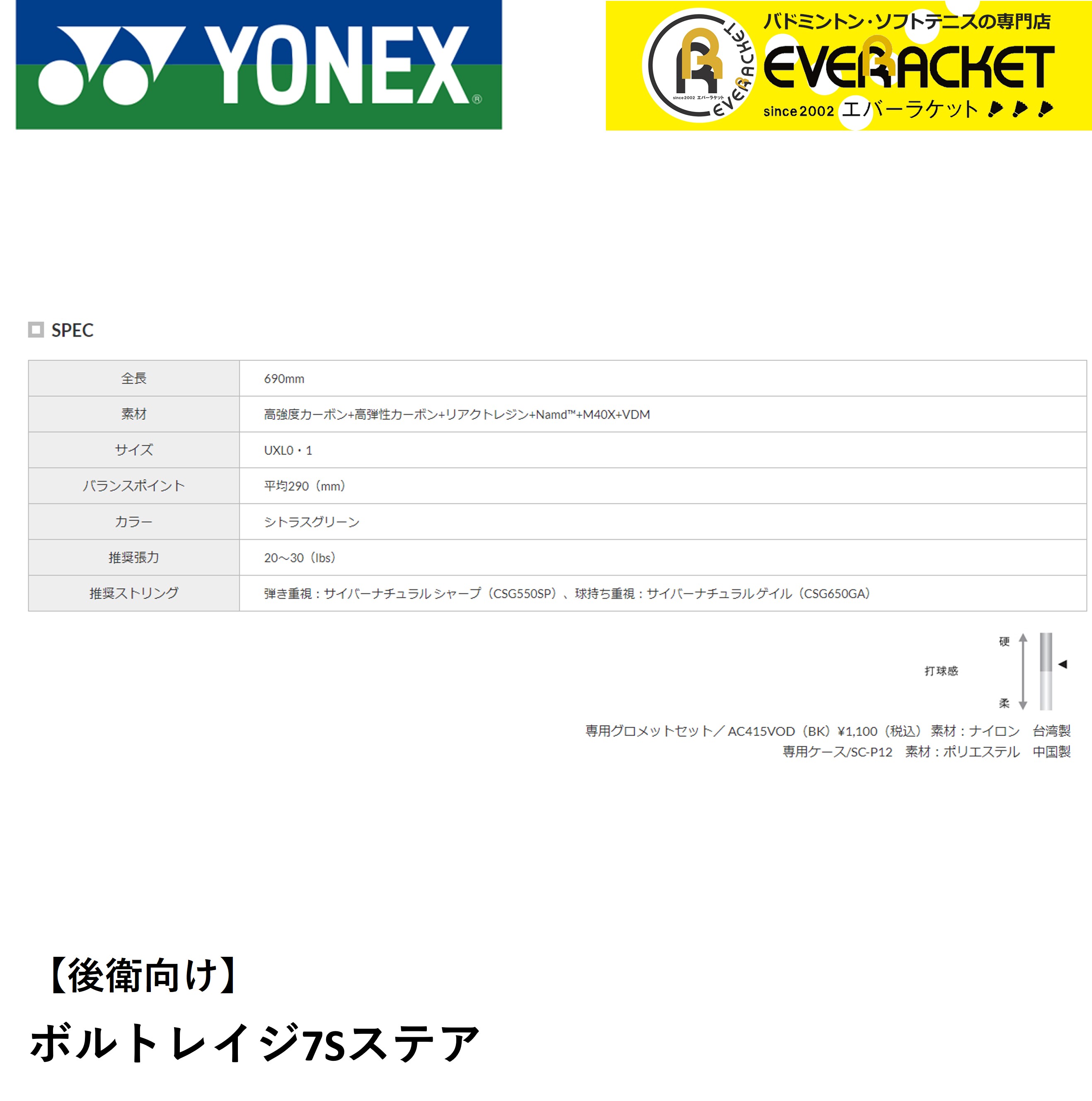 【ガット張り加工賃無料】【後衛用】YONEX ヨネックス ソフトテニスラケット ボルトレイジ7Sステア VR7S-S【最短出荷】