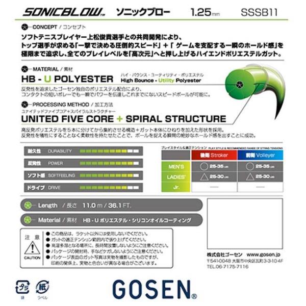 単張パッケージ品 ゴーセン(Gosen) SONICBLOW ソニックブロー 1.25mm ソフトテニスガット SSSB11(23y4m)
