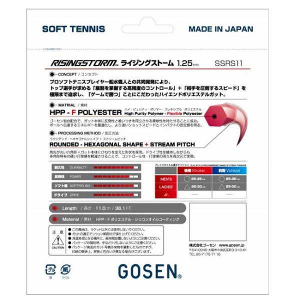 単張パッケージ品 ゴーセン(Gosen) RISINGSTORM ライジングストーム 1.25mm ソフトテニスガット SSRS11(22y10m)