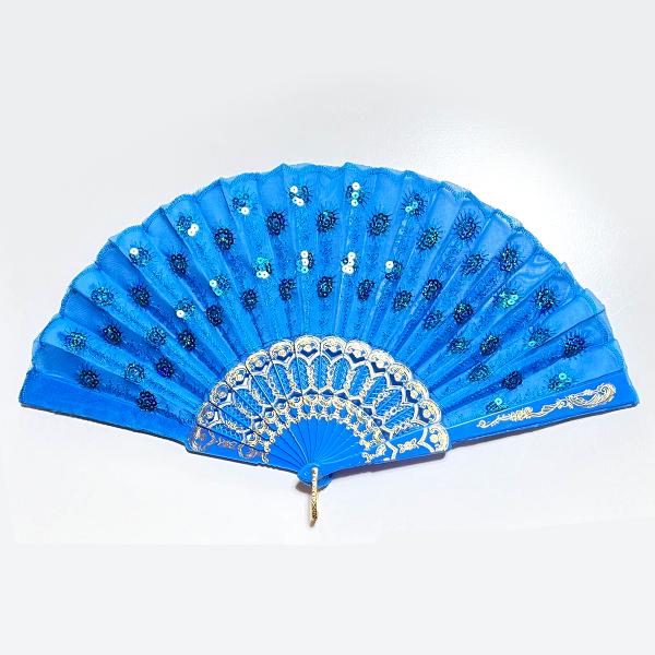 スパンコールと刺繍のゴージャスな扇子 レース地(青地×ブルー)アバニコ ダンス バレエ キトリ レッスン FA-018-BL