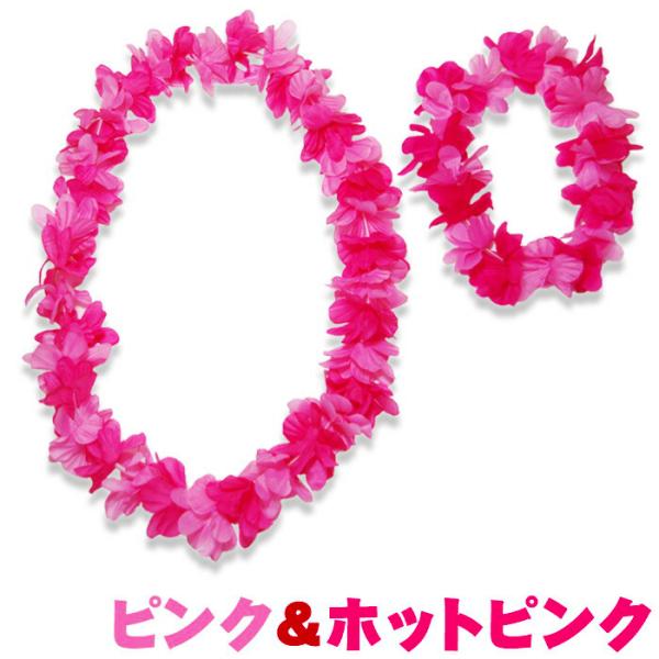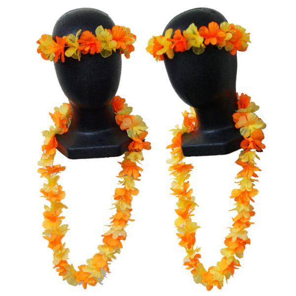 カウアイ レイ&ヘッドバンドセット ハワイアン フラダンス 練習 髪飾り 首飾り 花飾り 花冠 花輪 コスプレ 仮装 造花 飾り 全3色