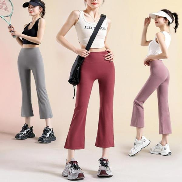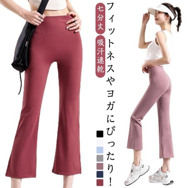 ヨガウェア ヨガパンツ パンツ レディース ストレッチ フレアパンツ 七分丈 フィットネス ダンス ズンバウェア ピラティス ホットヨガ スポーツ 吸