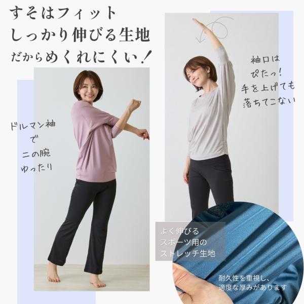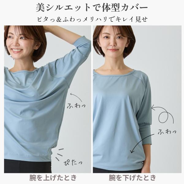 ヨガウェア トップス 長袖 7分袖 めくれにくい めくれない ドルマンスリーブ 吸汗速乾 UVカット 爆買