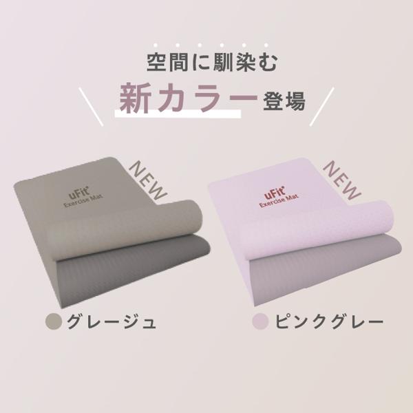 uFit Exercise Mat ヨガマット 8mm 61cm*183cm 厚手 幅広 大きい 痛くない 滑らない TPE 防水 グレー ブルー ピンク 日本ブランド ストレッチマット