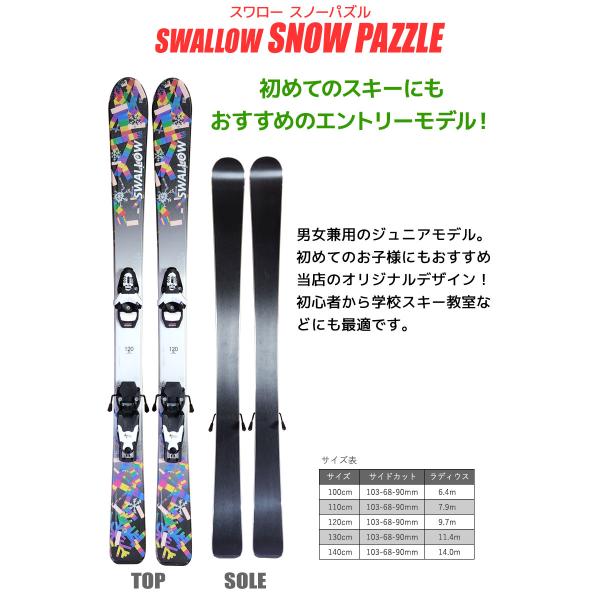 Jrスキー 4点セット キッズ ジュニア SWALLOW 22-23 SNOW PAZZLE スノーパズル ブラック 100〜140cm LOOK TEAM4 GW 金具付き ストック/ブーツ付き