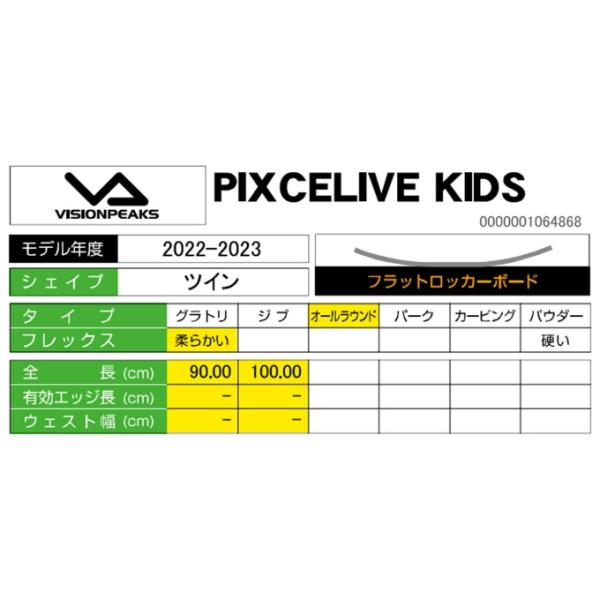 ビジョンピークス スノーボード 板 ジュニア フリースタイルボード PIXCELIVE KIDS オールラウンド 2022-2023 VISIONPEAKSフラットロッカー