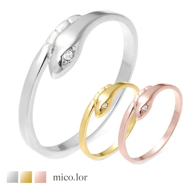 指輪 レディース ステンレス リング (244)ヘビCZ 選択可 銀色 金色 ピンクゴールド 指輪 メンズ 送料無料