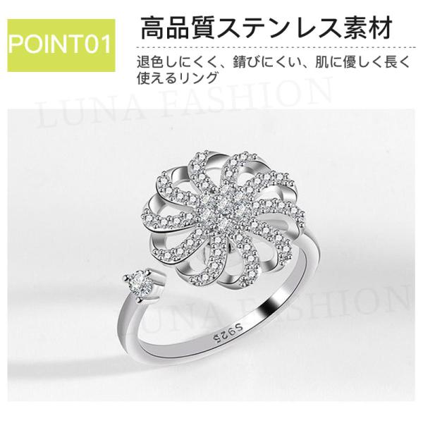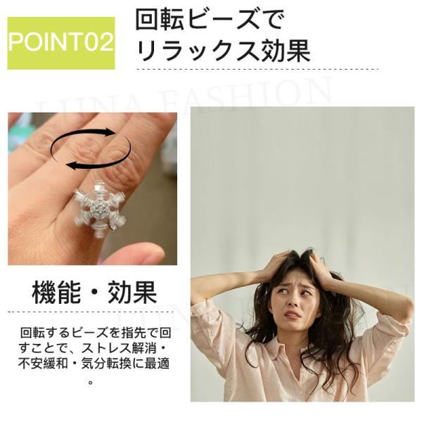 ストレス解消リング 指輪 リング レディース 金属 ビーズ付き 可動ランナー ストレス解消 不安を和らげるリング 調節可能 回転 オープンセット 不安解消 ギフト