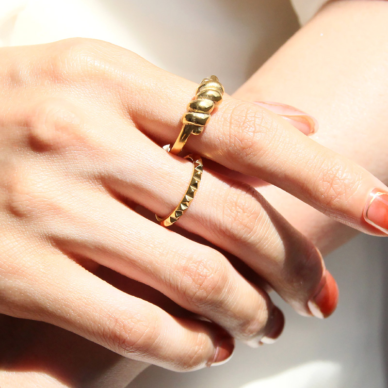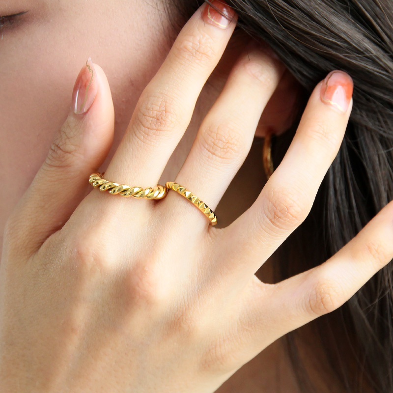 リング レディース ステンレス 指輪 つけっぱなし 誕生日プレゼント 女性 デザイン シンプル 18K ゴールド 50代 40代 30代 20代 スタッズ 1953