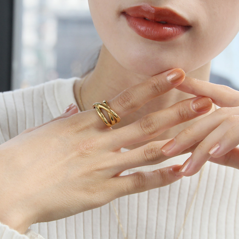 金属アレルギー対応 リング レディース 指輪 イヤーカフ サージカルステンレス つけっぱなし プレゼント 女性 大きめ ゴールド シルバー ボリュームライン