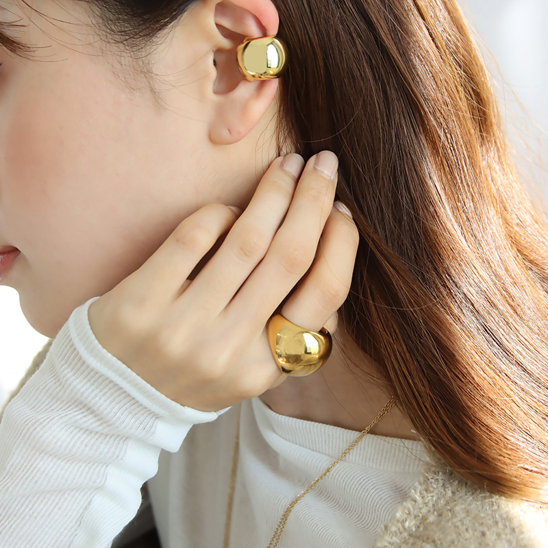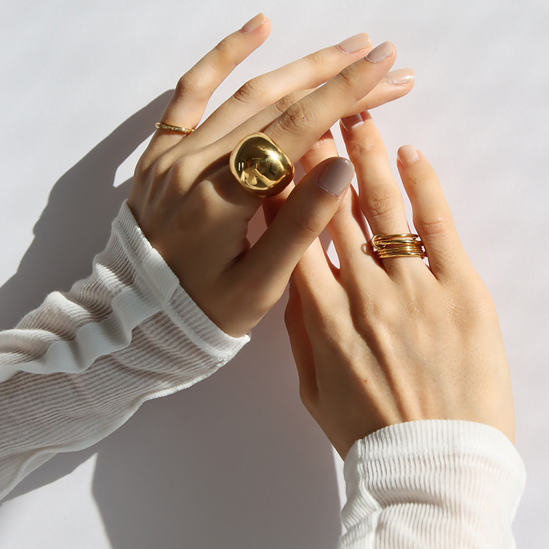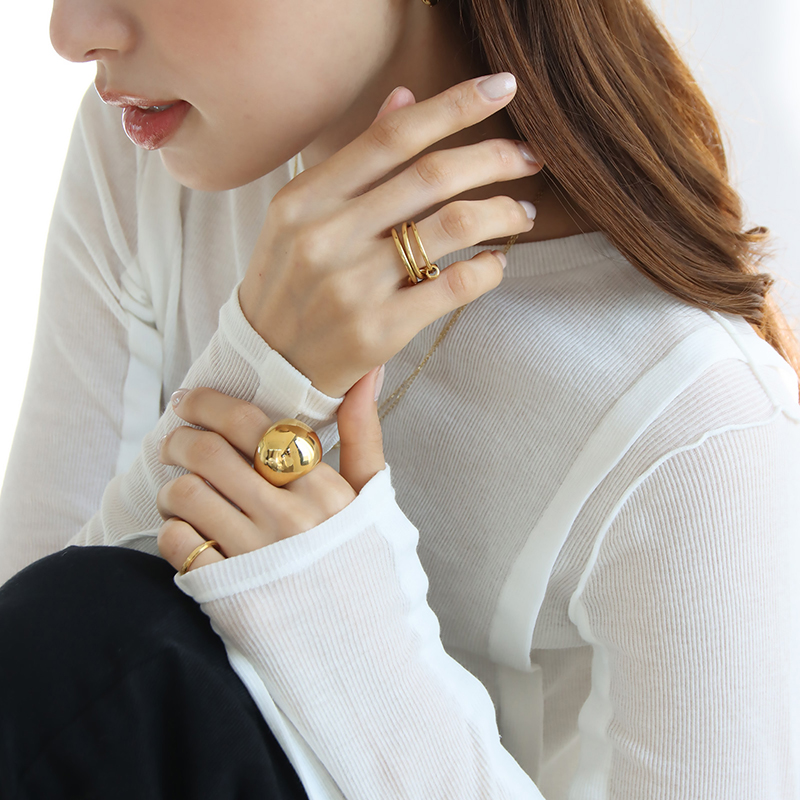 金属アレルギー対応 リング ボリュームデザイン 太め ごつめ サージカルステンレス 18K つけっぱなし ゴールド シルバー 丸み 女性 30代 40代 50代 指輪