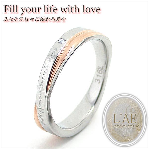リング レーザー刻印無料 ステンレス サージカルステンレス メッセージリング 結婚指輪 マリッジ マリッジリング ペア リング ピンク ローズゴールド 名入れ