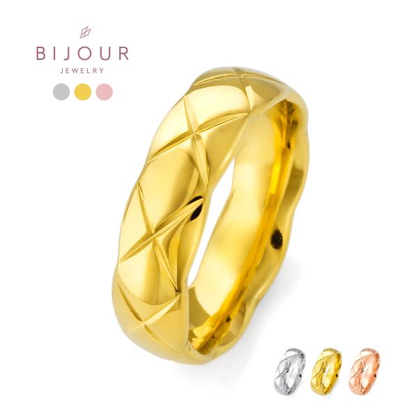 金属アレルギー対応 つけっぱなしOK リング ステンレス キルティング 模様 Bijour ビジュール biri0110 フェミニン