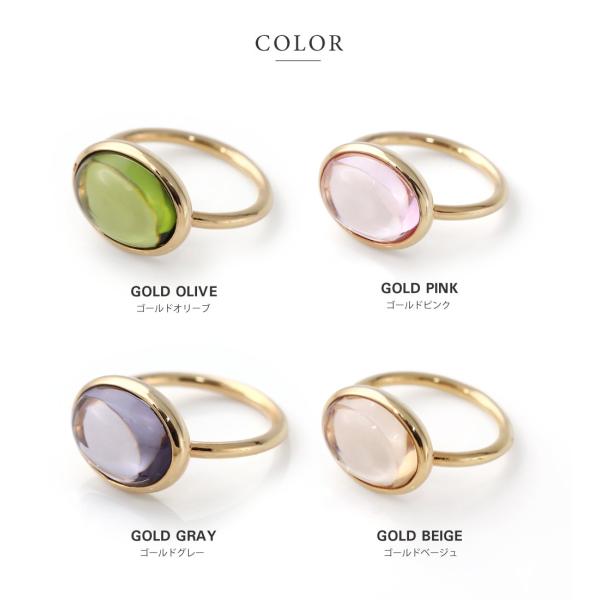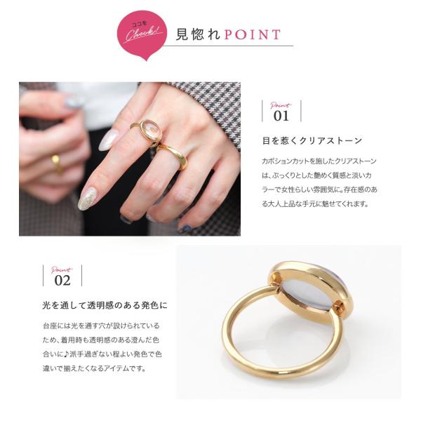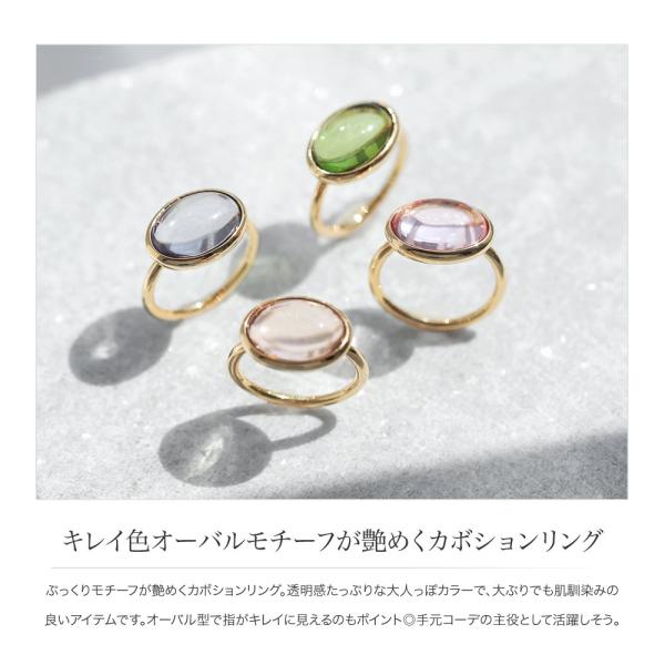 金属アレルギー対応 リング 指輪 ニッケルフリー 18kコーティング カボションリング オーバル クリアカラー 透明感