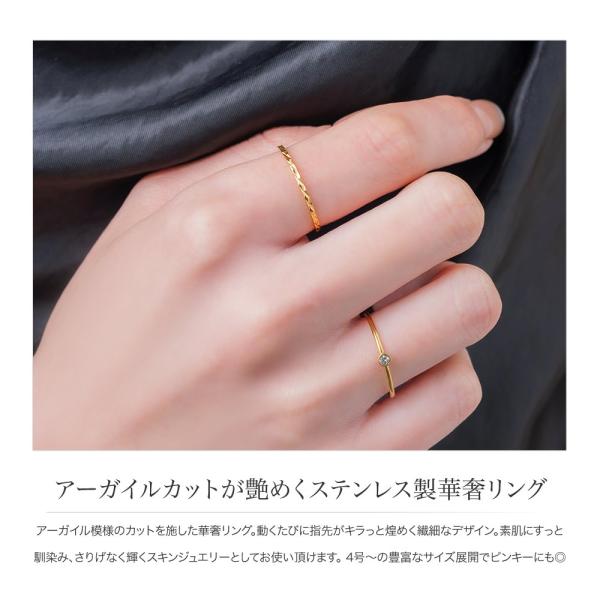 【最大32%OFF×全品送料無料】サージカルステンレス リング 指輪 金属アレルギー対応 つけっぱなし ピンキーリング アーガイルカット 極細 スキンジュエリー